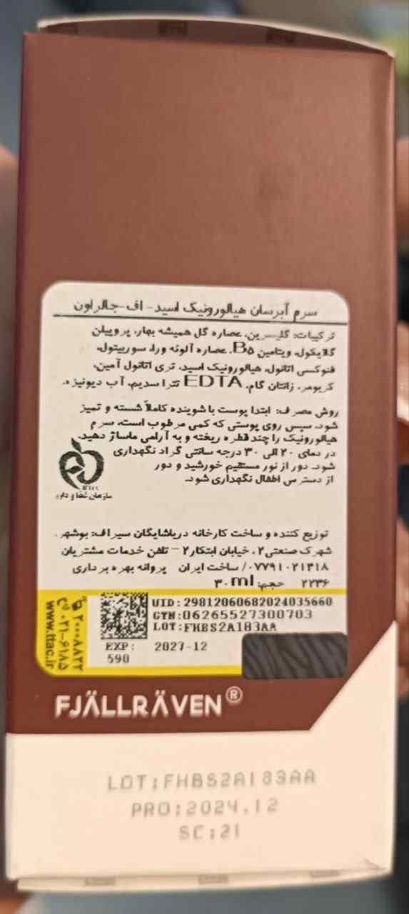 سرم آبرسان پوست هیالورونیک اسید اف جالراون، این محصول دارای فرمولاسیونی پیشرفته است که حاوی هیالورونیک اسید با سه اندازه ی مولکولی کوچک، متوسط و بزرگ می باشد. سایز های مختلف هیالورونیک اسید موجود در این محصول می توانند به صورت عمقی به لایه های مختلف پوست نفوذ کرده و سبب آبرسانی مناسب به پوست گردند. همچنین، این محصول حاوی ویتامین B5 می باشد که سبب جذب بیشتر هیالورونیک اسید می گردد. این محصول فاقد چربی می باشد و سبب ایجاد جوش و حساسیت نمی شود.